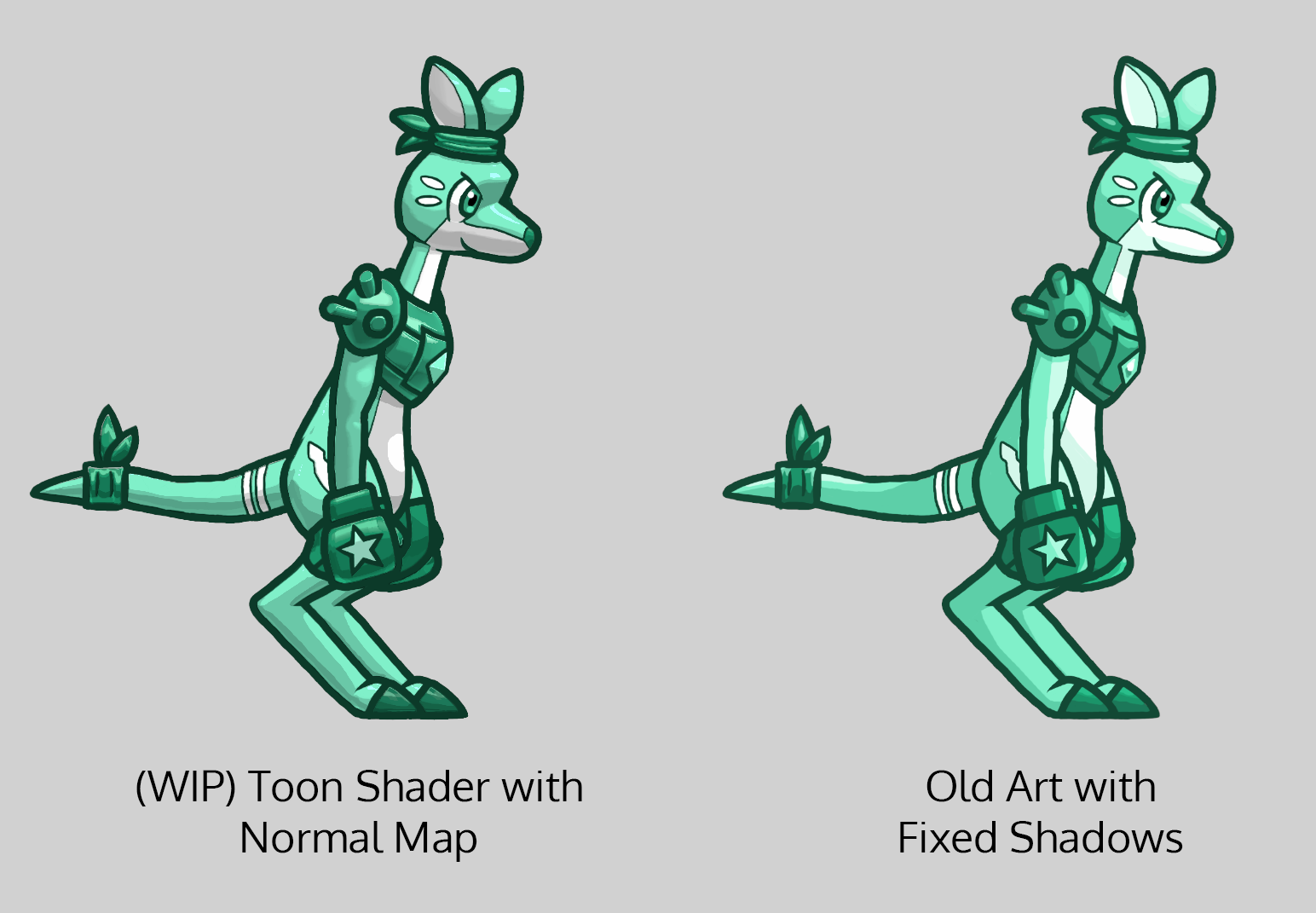 My job as a game dev professor makes it hard to stick to a detailed roadmap, but the next step is to make another demo with sick graphics, some story elements, and closer level design to what's going to be in the final game. Right now I'm experimenting with a custom Toon Shader and hand-painted normal maps. Here's a (very early) sneak peek: